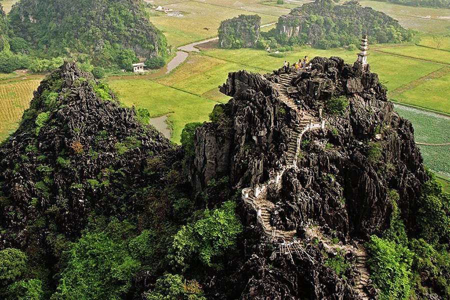 15:30 We arrive at Mua Cave (Hang Mua), where you can get the impressive panoramic views of Tam Coc and Ninh Binh City, see the amazing scenery of rice fields and river canals when you reach the top point of Ngoa Long Mountain (about 500 stone steps).